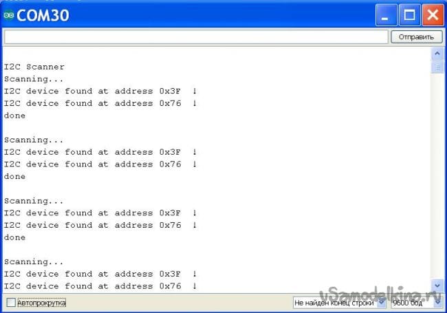 Я определил этот адрес с помощью скетча «сканера адреса устройств I2C», описанного в статье.
