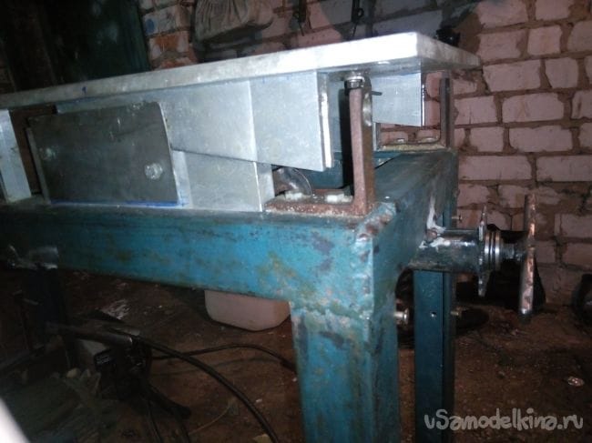Купил я самодельный деревообрабатывающий станокВо время работы ,мне очень не понравилась регулировка фуговального стола по глубине строгания.Регулировка происходила при помощи двух самодельных винтов когда регулировал винты,то происходил перекос стола.