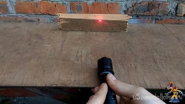Ну вот и готов самодельный режущий лазер, а это значит, что пора приступить к его испытаниям. Данный лазер достаточно хорошо выжигает на деревянных поверхностях, плавит пластик и поджигает спички на расстоянии полутора метров, что я считаю достойно для такого маленького лазера, а также легкодоступного и недорогого.