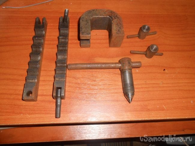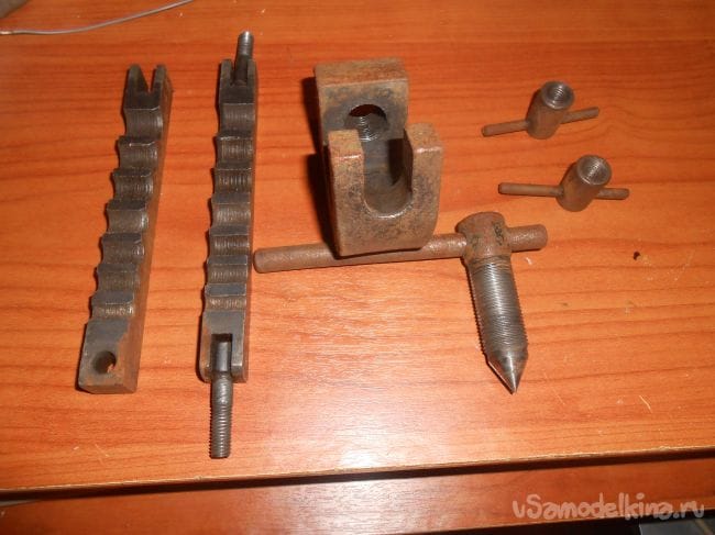 по краям резьбочки с гайками для скрепления двух половинок тисков.
