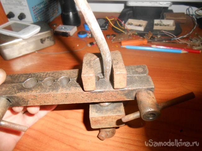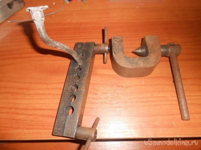 - Тисков с отверстиями разных диаметров, держателя закрепленной трубки.