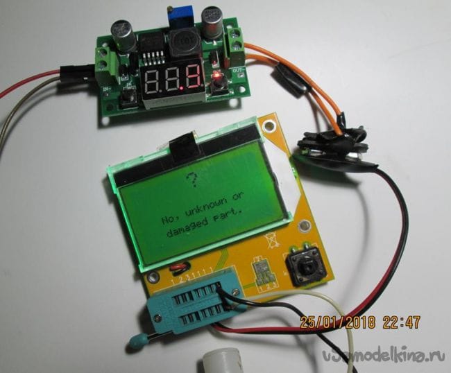 Lcr-t4 - это комбинированный электронный прибор, который может измерять ёмкость конденсаторов, сопротивление резисторов, индуктивности катушек. Lcr-t4 может определять параметры транзисторов, диодов. Причем он покажет вам тип транзистора, его характеристики, обозначение выводов транзистора на графическом ЖК-дисплее.