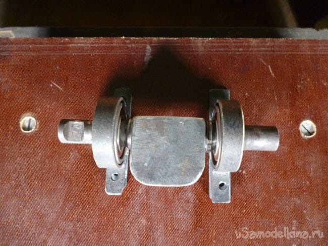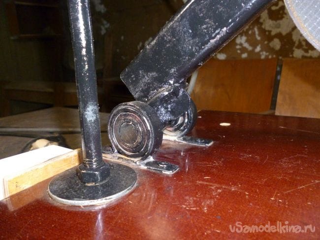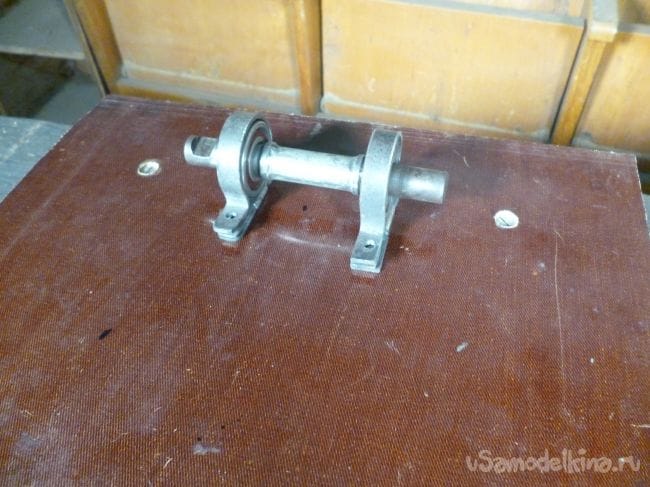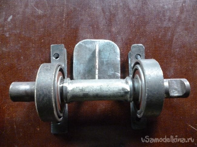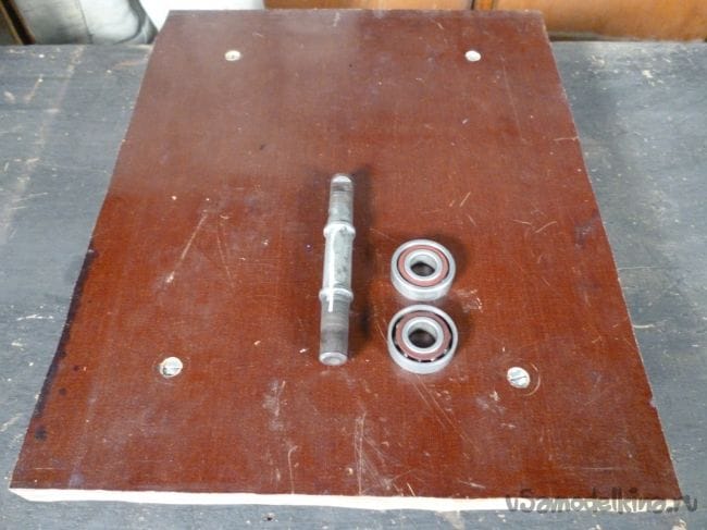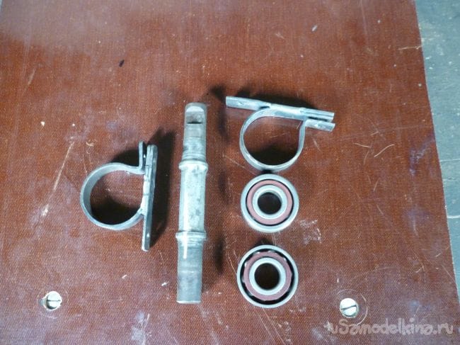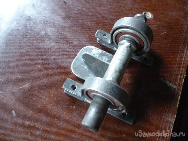 Поворотный механизм сделаем из оси каретки велосипеда, с насаженными на нее подходящими по размеру подшипниками.