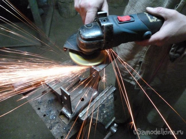 Углы на профиле высчитываем так, чтобы стойка центровала болгарку относительно поворотного механизма.