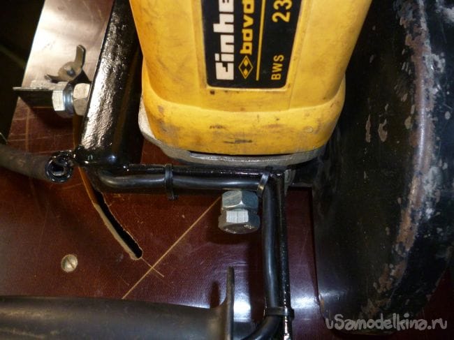 Прикручиваем болгарку и маятниковая пила готова.