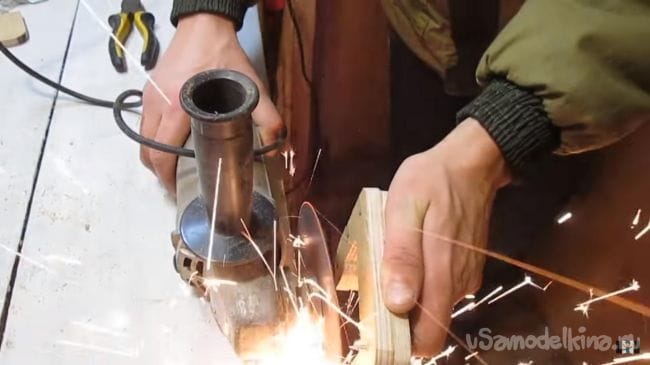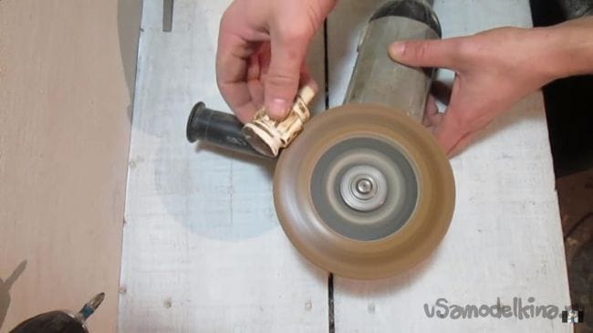 Теперь переходим в шлифовке деталей. Данный способ шлифования при помощи болгарки я не советую, так как это совсем небезопасно, если же у вас есть шлифовальная машинка или специальный станок для этих дел, то конечно же разумнее будет обработать эти две детали на них, нежели использовать УШМ.