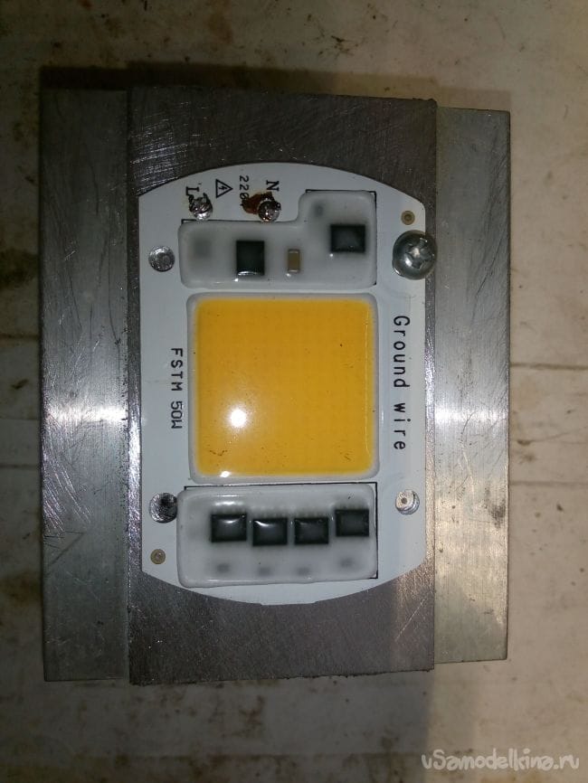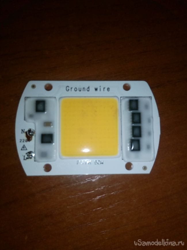 Пришел мне из Китая светодиод на 50W с прямым подключение к сети 220V. Перед этим достался мне прожектор галогенный на 1000W, в котором постоянно перегорают лампы