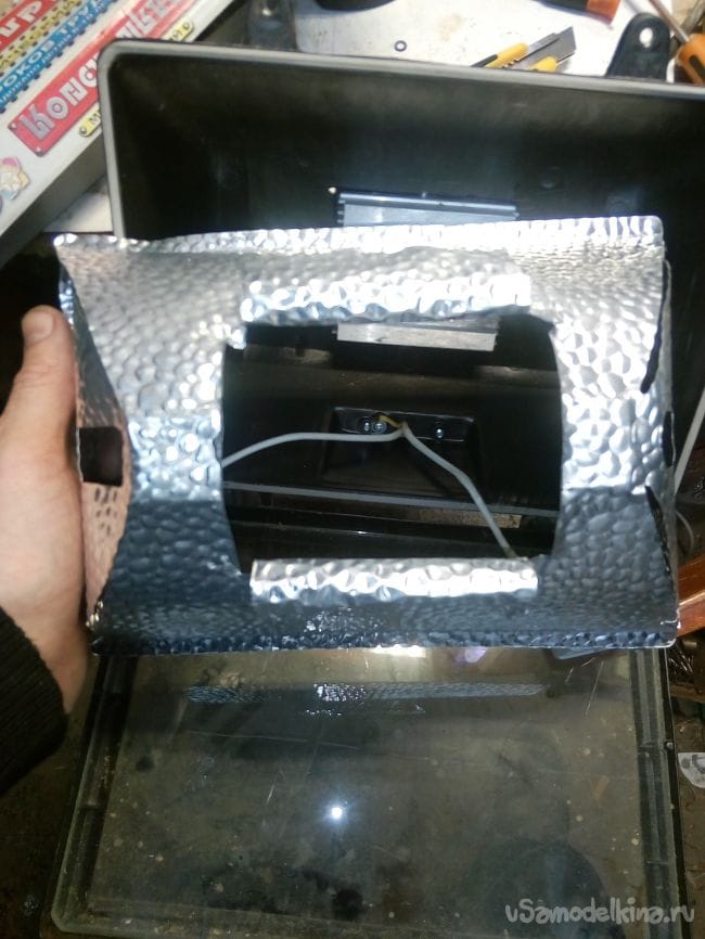 Отражатель оставил этот же, немного подрезал и он чётко встал на место.