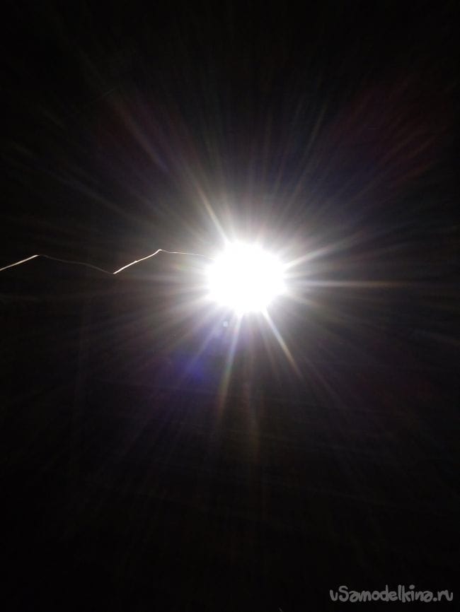 Только использовать его можно для освещения улицы, так как светодиод заметно мерцает и напрягает зрение. Оставил его включённым на всю ночь,свечение не изменилось, корпус был немного тёплый.