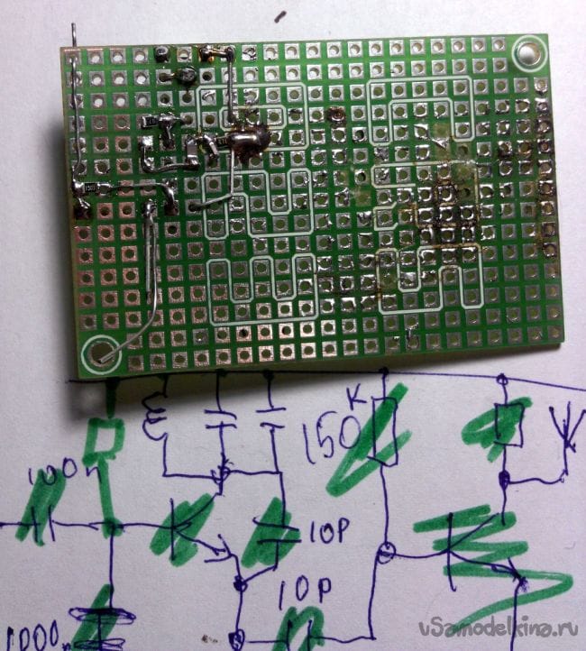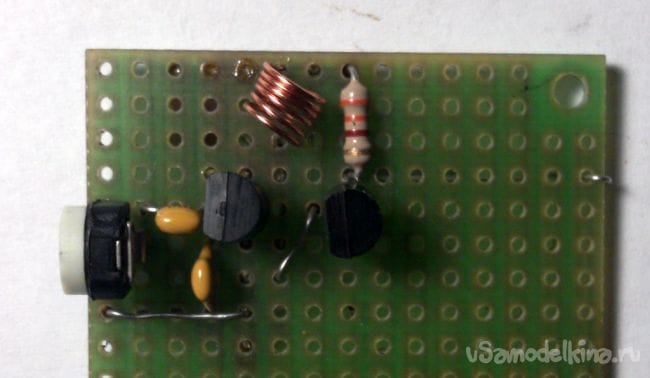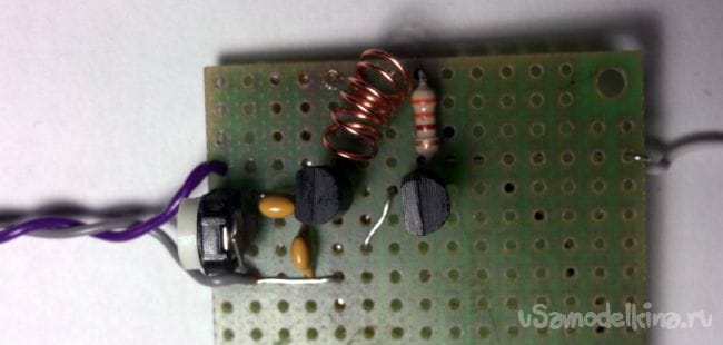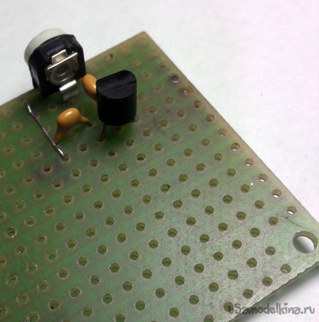 Пообкусывал лишнее и пропаял подстроечный резистор, базу транзистора и конденсатор.