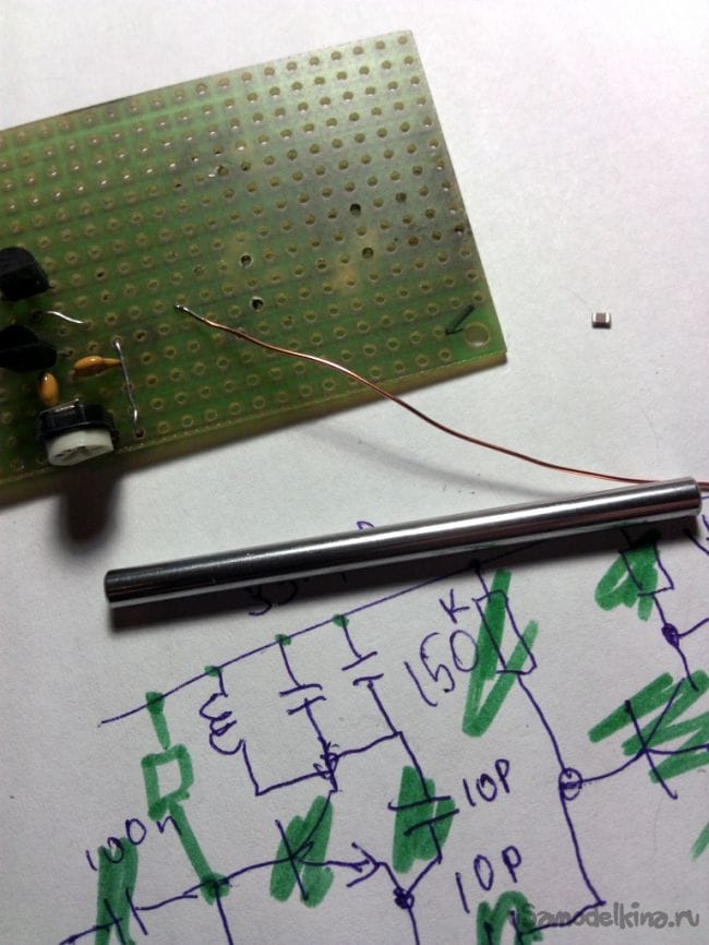 Набрал первые три элемента - подстроечник, транзистор и входной конденсатор.
