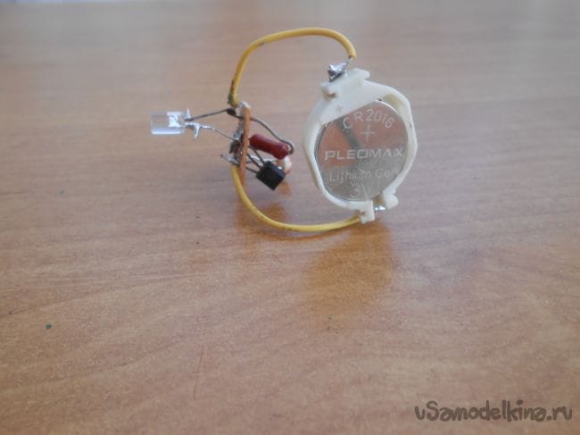 Светодиод, (можно 2), стоимость 15 рублей в авто магазине. В схеме на светодиоде нужно поменять токоограничивающий резистор, в магазине он стоит на 12 вольт, у меня на 3 вольтах стоит без резистора.