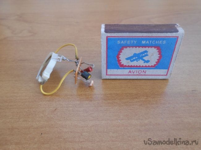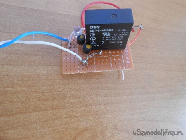 Первый вариант сделал с 9 вольтовым реле. Испытания показали прожорливость схемы, за ночь аккумулятор типа «Крона» сел с 9 до 6 вольт. Правда не первой свежести был от мультиметра.