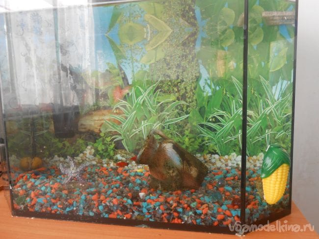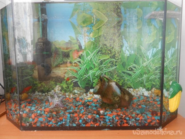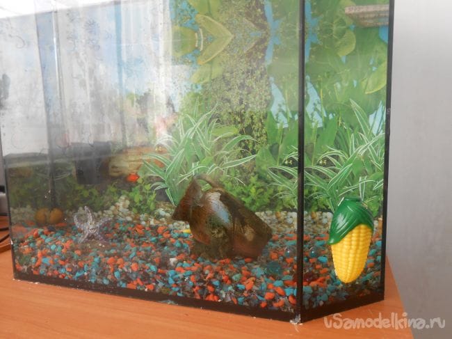 Закрепил клеящим пистолетом приборчик в почти что светильнике и на двухсторонний скотч поместил на аквариум, что бы снимать когда нужно помыть аквариум или замена батарейки.