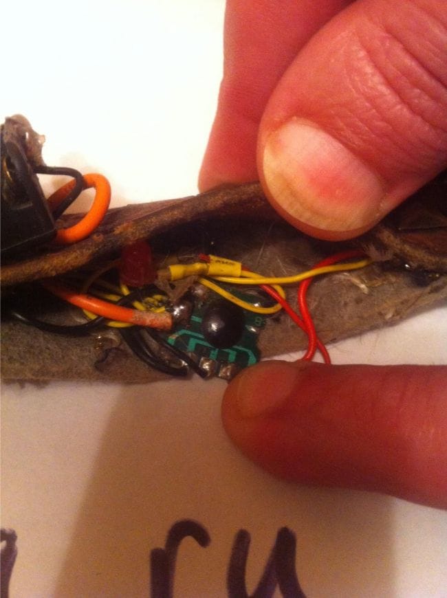 Протягиваем провода вдоль ошейника к плате и подпаиваем.