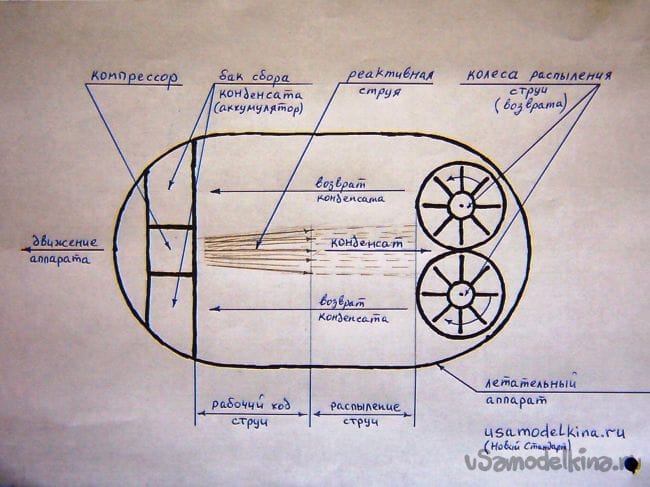 Здесь приводом может быть обычный электрический двигатель (компрессор для создания реактивной струи воды) ...