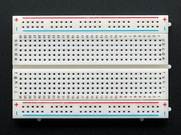 1. Подключите vcc к положительной клемме макетной плате, и GND к отрицательному полюсу