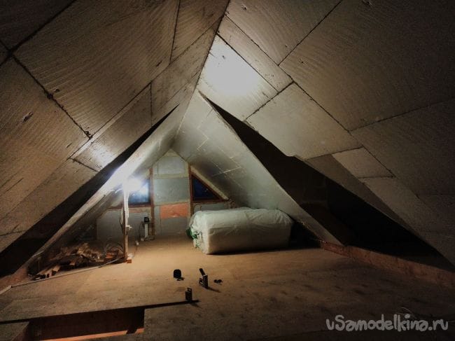 Минусы: Полевые грызуны задолбали, топот их копыт достал (бегают по поверхности с улицы и грызут утеплитель). Вынужден включать ультразвук для отпугивания. При монтаже можно переляпать всё монтажной пеной. Хороший пенополистирол достаточно дорог в сравнении с ватой.