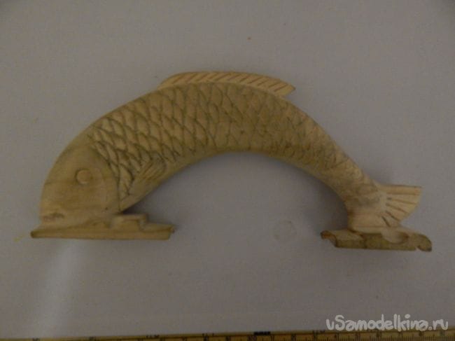 7. Теперь ответственный момент- обжиг древесины, здесь лучше не торопиться, испортить почти готовое изделие очень легко, исправить гораздо труднее (восточная мудрость: «Будешь напрасно гнать коня- находишься пешком»). Рыбину обжигаем только со спинской стороны имитируя её окрас, прищепки как вам будет угодно, надо только иметь ввиду, что во впадинах обжиг происходит хуже и получаются светлые пятна.