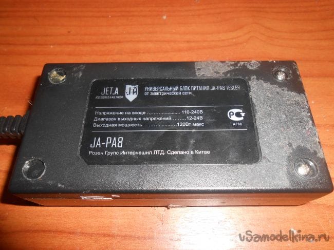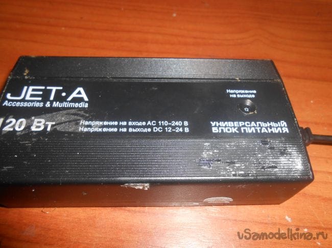 Вместо 5 амперного блока питания от ноутбука подключаем 10 амперный универсальный блок питания.