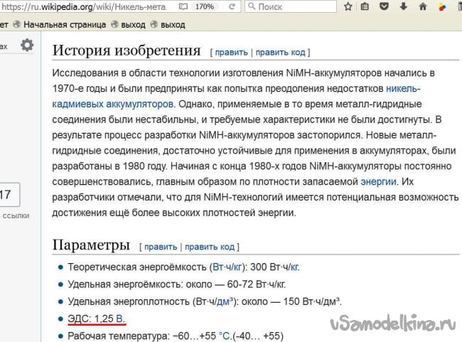 Определение внутреннего сопротивления аккумулятора, надеюсь, мне даст возможность определять на практике пригодность конкретного аккумулятора к работе в цифровом фотоаппарате. Реклама в этом вопросе оказалась плохим подсказчиком, если еще учесть, что электродвижущая сила никель - кадмиевых аккумуляторов равна 1,2 вольта, а электродвижущая сила никель - металлогидридного аккумуляторов равна 1,25 вольта ( по данным Википедии ).