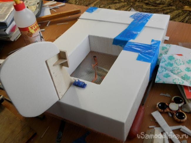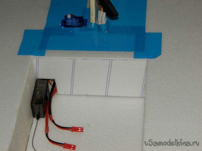 Шаг 7 подготовка к установке электроники. Я вырезал все прорези под электронику и проверил входит ли сервопривод.