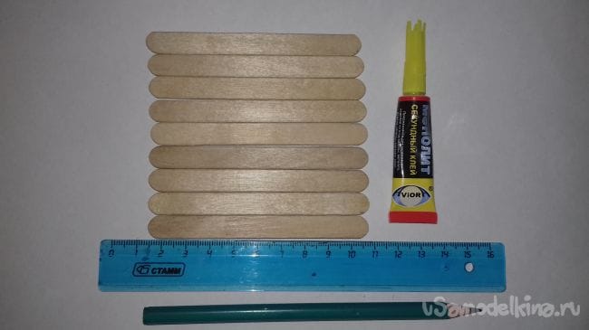 3 шаг. Далее склеиваем остальные палочки.