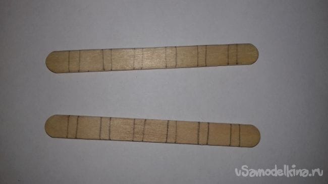 1 шаг. Сначала берём две палочки и делаем метки. 2 мм и 9 мм.