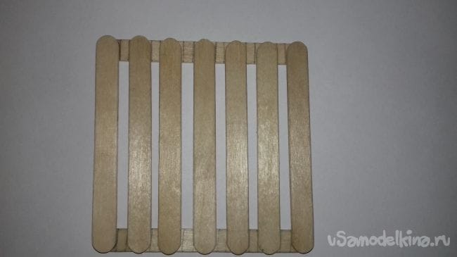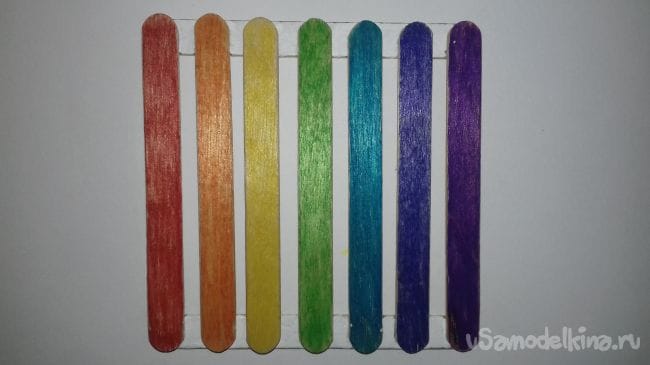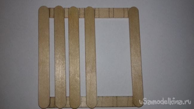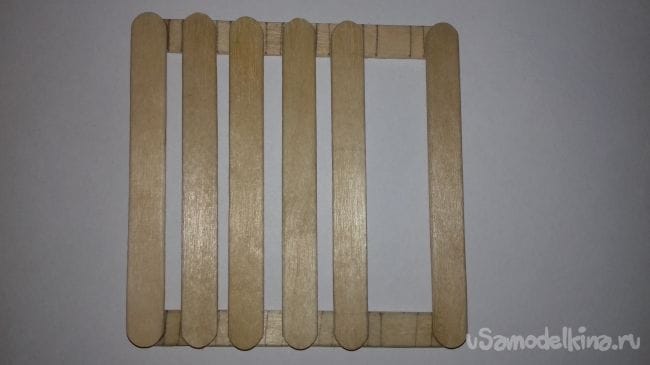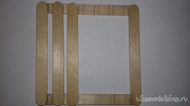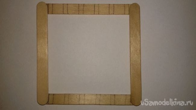2 шаг. Теперь склеиваем крайние палочки.