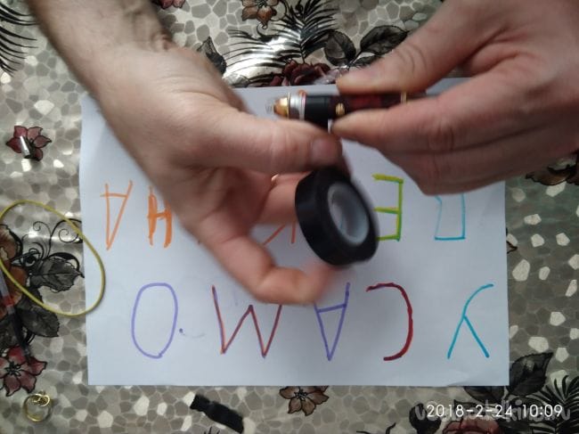 Снимаю с лазерной указки колечко. Закрепляю указку на ручке изолентой.