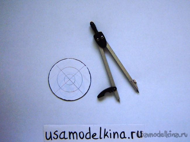 Чертим на бумаге с помощью циркуля круг нужного размера, под цоколь с разметкой для светодиодов: