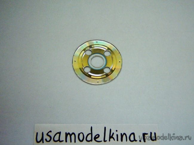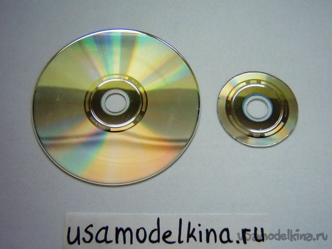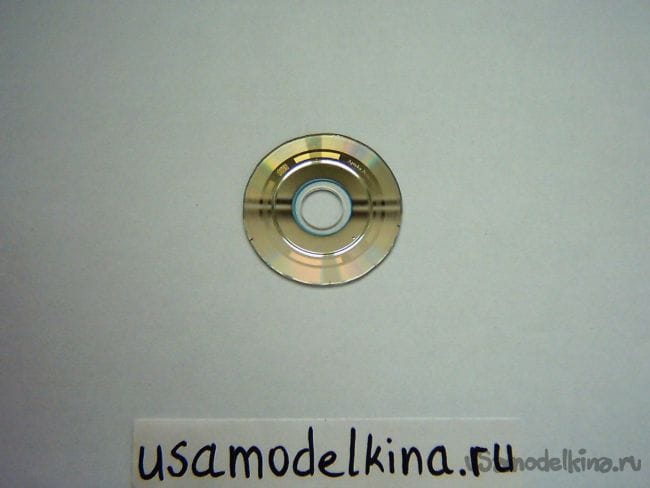 Прикладываем бумажный круг к CD-диску, переносим шилом всю разметку, после чего гровером вырезаем маленький диск: