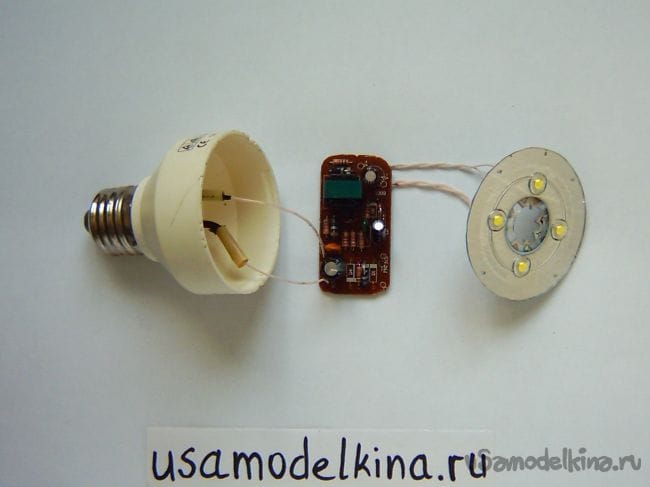 - цоколь с резьбой от перегоревшей экономной лампы с пластмассовым корпусом;