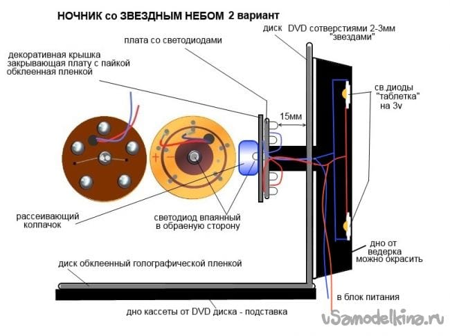 Прекрасный ночник получается из диска DVD. Не напрягает, достаточен для мягкого освещения. Световая картинка на диске меняется в зависимости от местаположения зрителя, и создается впечатление "стерео". Делается просто и быстро. Cнимки сделаны телефоном, за качество прошу не ругать.