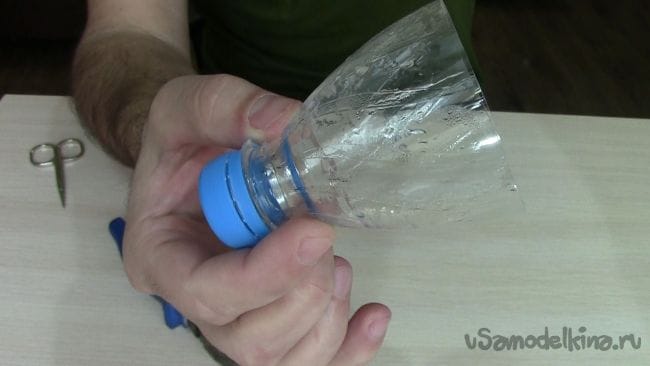 Первым делом отрезаем от бутылки горлышко, примерно 10см.