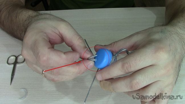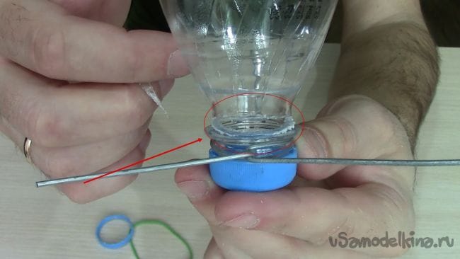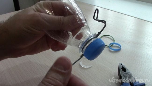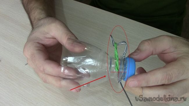 Надежно прикручиваем конструкцию из проволоки к горлышку бутылки.