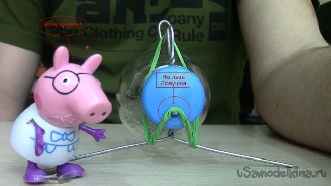 Одеваем канцелярскую резинку и заряжаем ловушку.