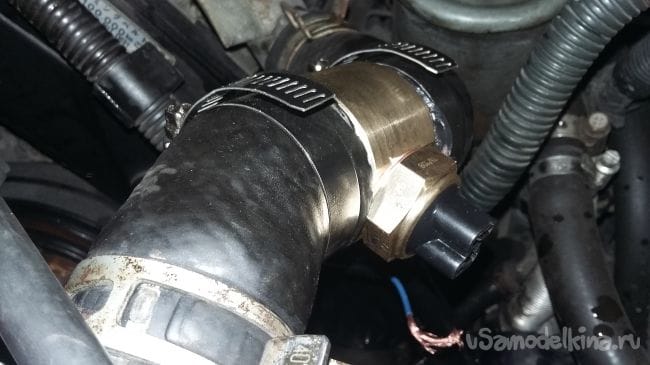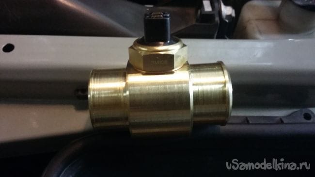 Вопрос вставки тройника был довольно сложный так-как изгиб патрубка имеет не большие размеры, примерил обрезал, ну и подгонял по месту,