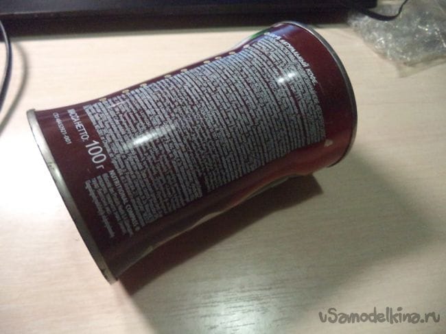 Теперь будем изготавливать корпус светодиодного светильника из другой жестяной банки с более большим объемом, чем предыдущая.