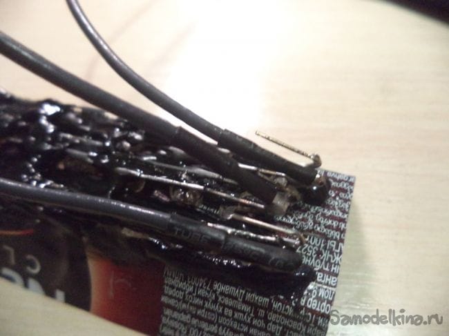 Припаиваем провода между собой и к ним припаиваем провод питания.