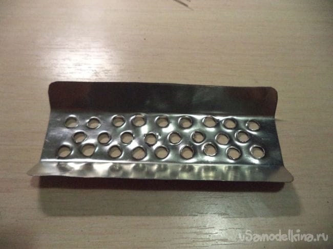 Проводим изгибы жестяной пластины следующим образом, как показано на фотографии.