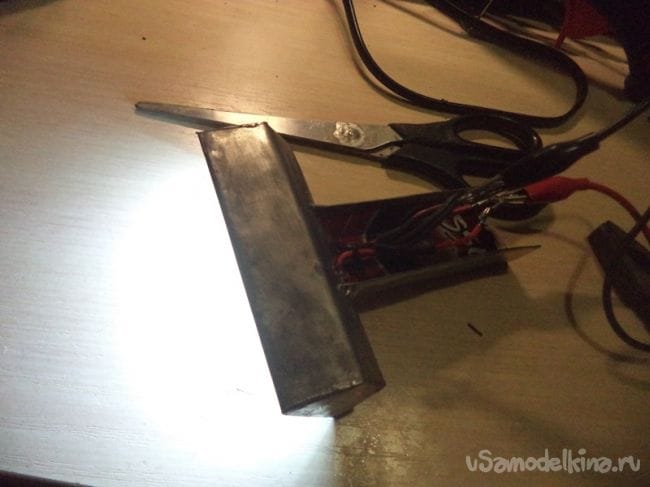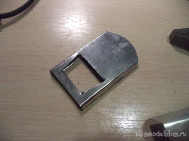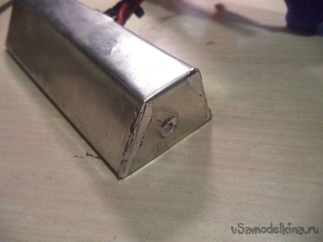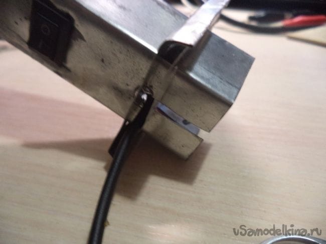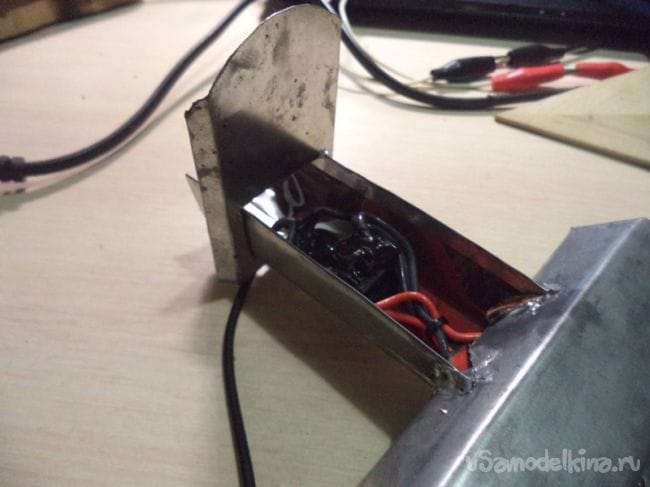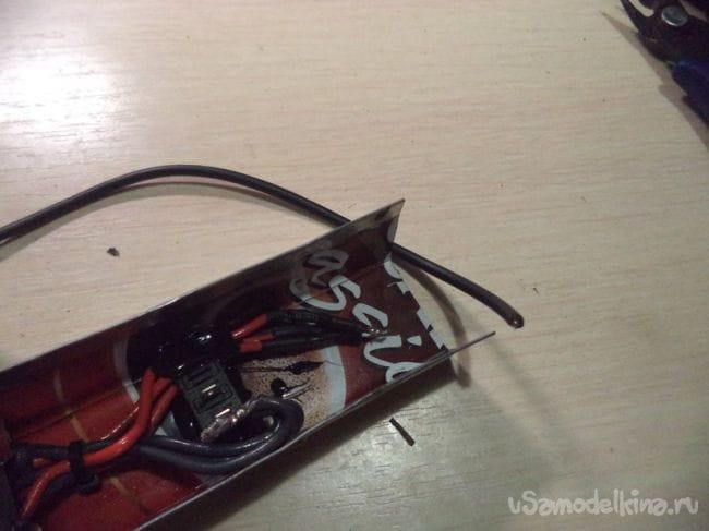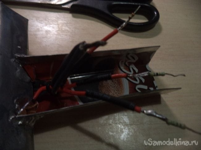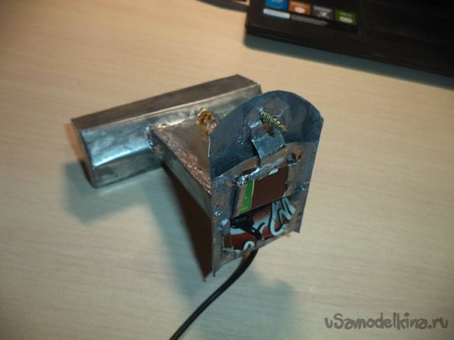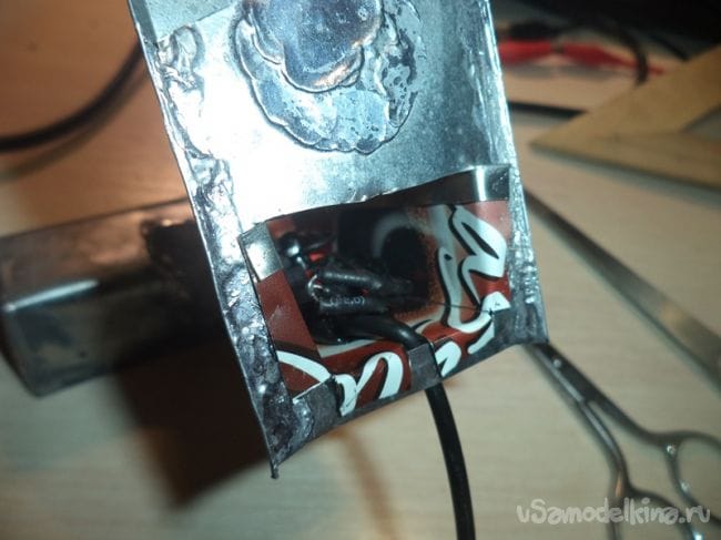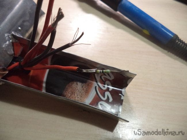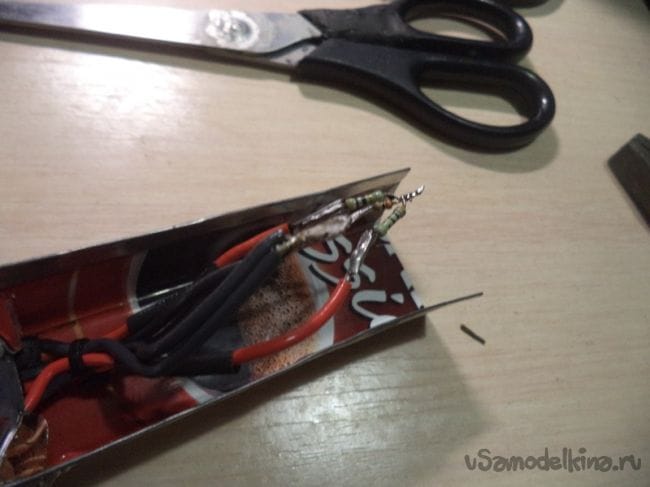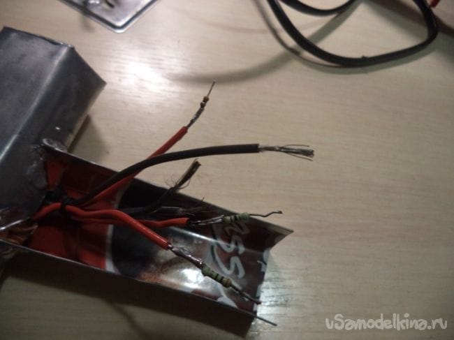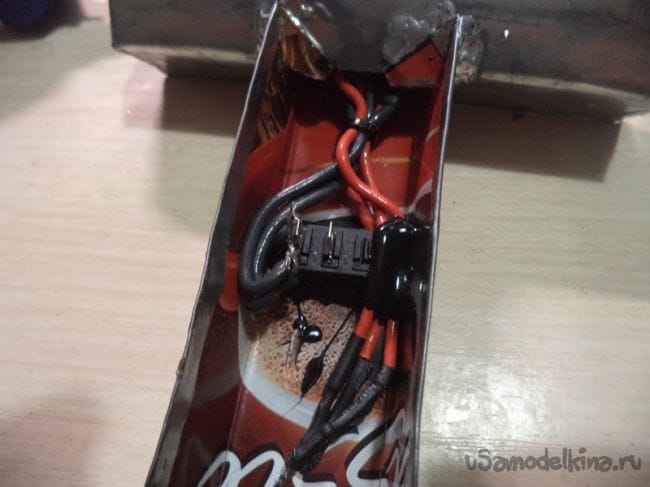 Далее берем другую жестяную пластинку, и изготовим из неё блок, в которой будет выключатель, резисторы и основные узлы проводов.