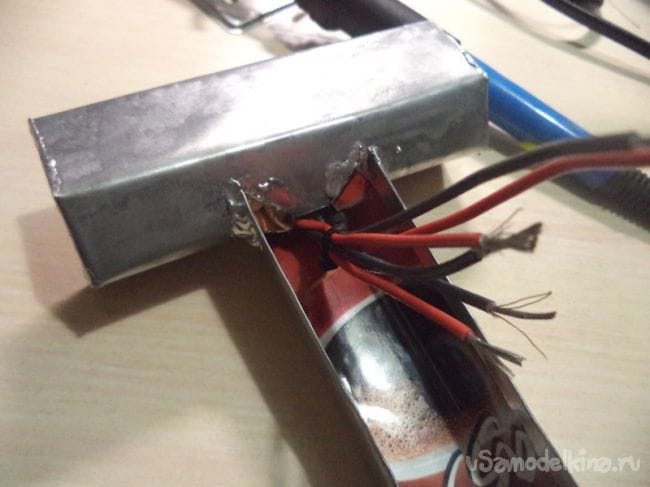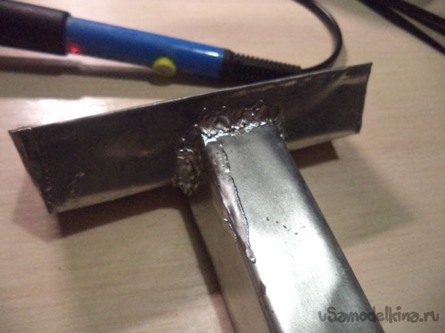 Материал, из которого изготовлены банки из под кофе легко поддаются пайке, не так, как алюминий, и для большей прочности я некоторые узлы запаял с помощью электрического паяльника и припоя.