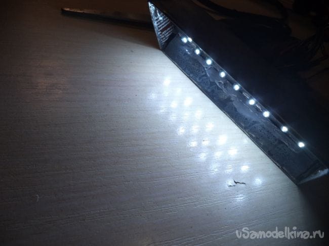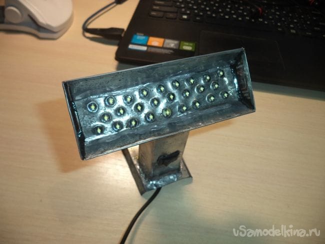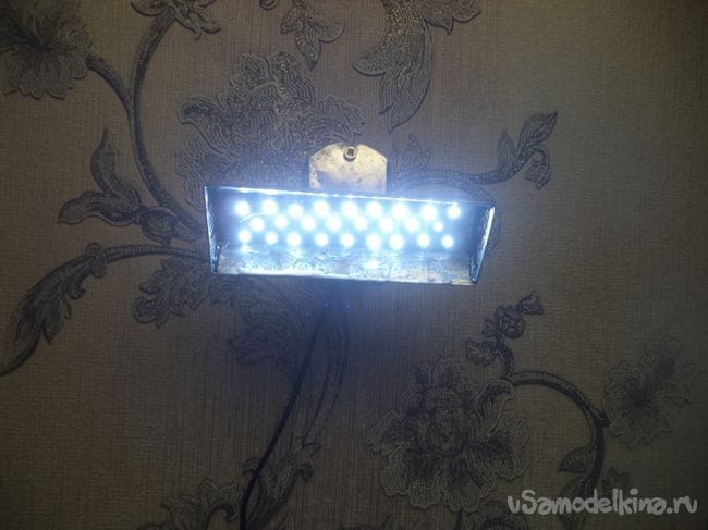 Самоделка, то есть светодиодный светильник готов. Осталось лишь закрепить на стену или на другую любую поверхность