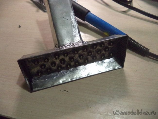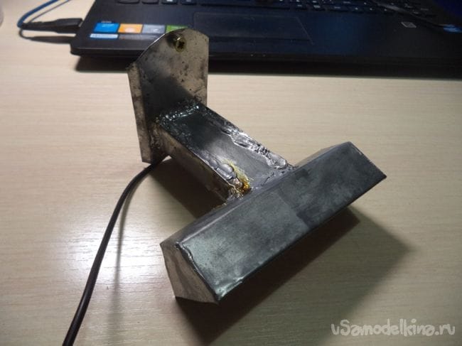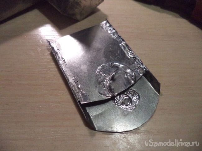 С другой стороны пластинки припаиваем другую пластинку из под донышка другой банки кофе для большей надежности конструкции.