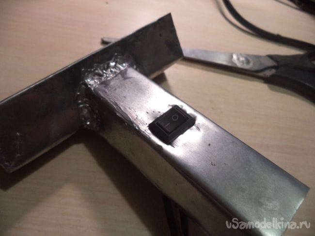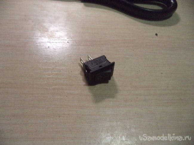 Теперь устанавливаем выключатель, обрезав на корпусе под нее посадочное место.