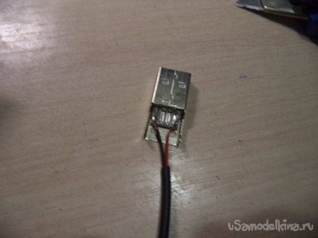 К другому концу провода питания припаиваем usb штекер, чтобы светильник можно було бы подключать к любому устройству, будь это ноутбук, внешний аккумулятор или обычный блок питания.