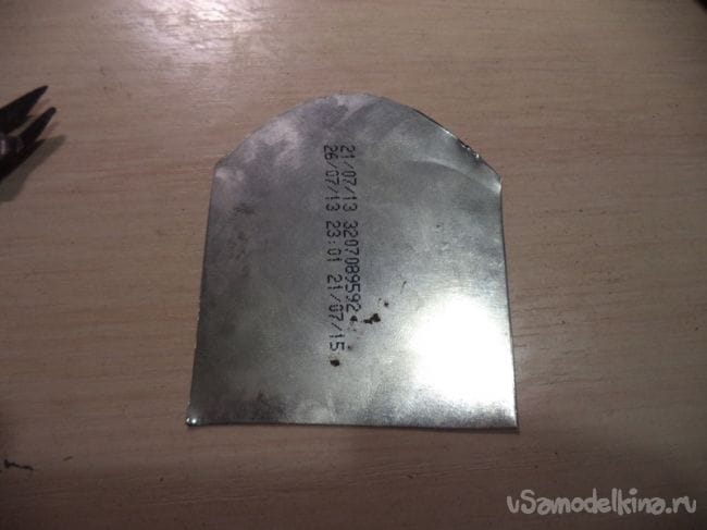 Снова берем пластинку из жести и закрываем ею незакрытую часть светильника.