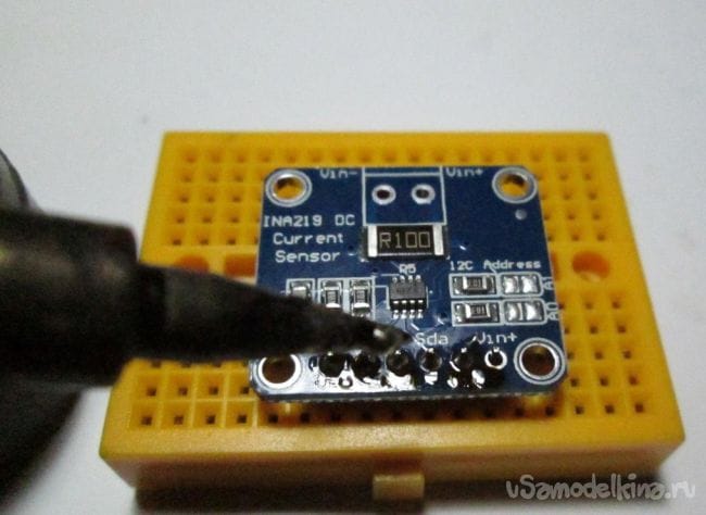 Я хочу применить плату с микросхемой INA219 для экспериментов. Мне с ней будет работать удобнее, если я запаяю на плату разъём и штырьки BLS.
