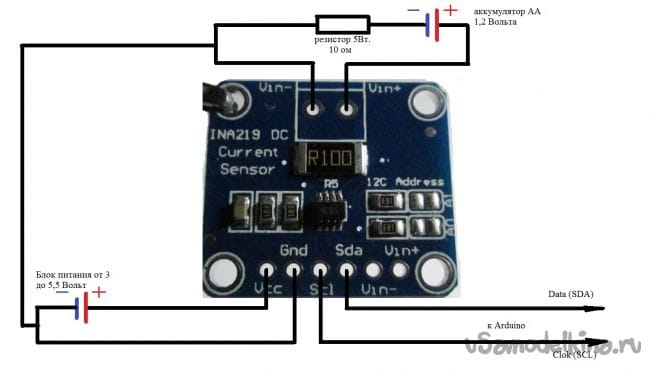 Питание на плату с микросхемой INA219 нужно подать с платы Arduino или другого источника питания.